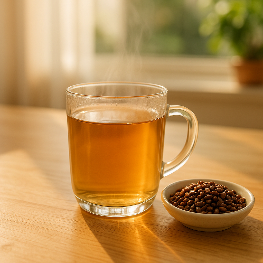 결명자차는 카페인이 없어 밤에도 부담 없이 마실 수 있습니다. - 결명자차를 끓이는 방법은?