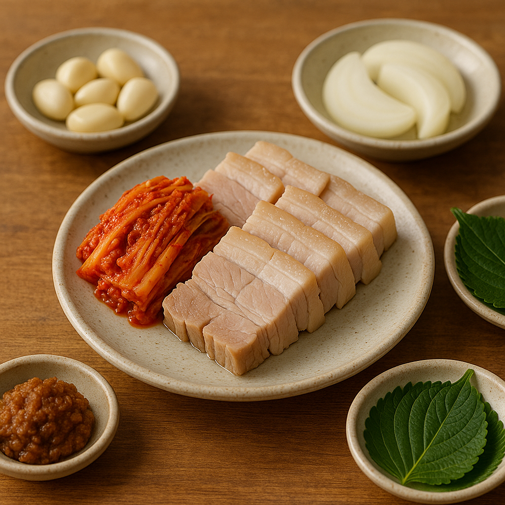 👉 수육 + 마늘 + 상추 + 김치 + 된장, 완벽한 균형 보양식 조합입니다.